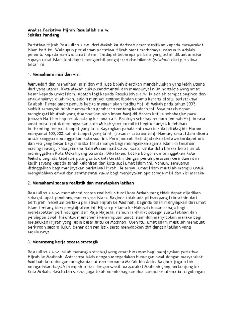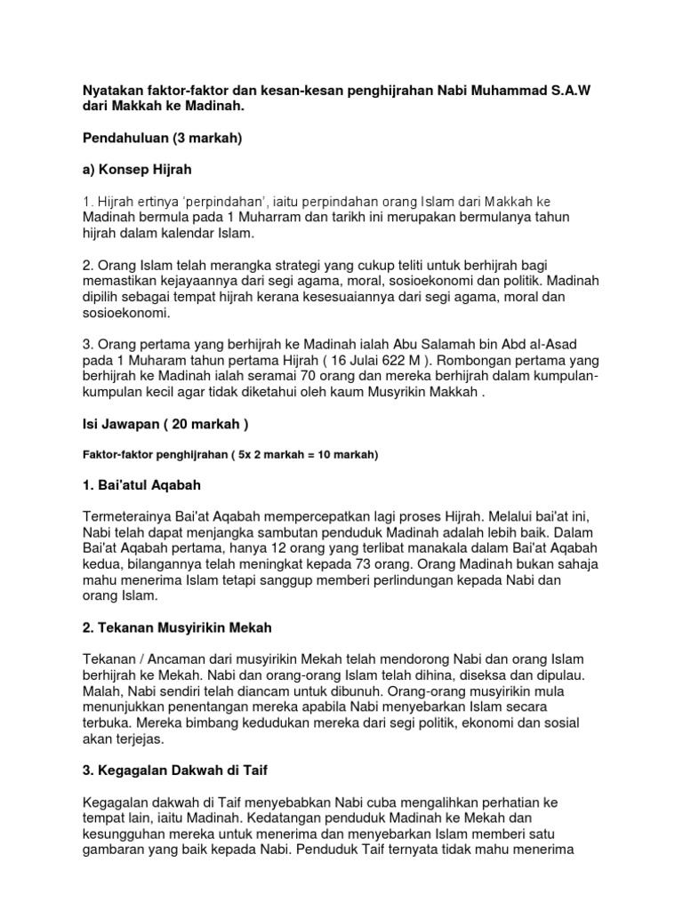 Kesan Kesan Penghijrahan Nabi Muhammad S A W Dari Makkah Ke Madinah Pdf