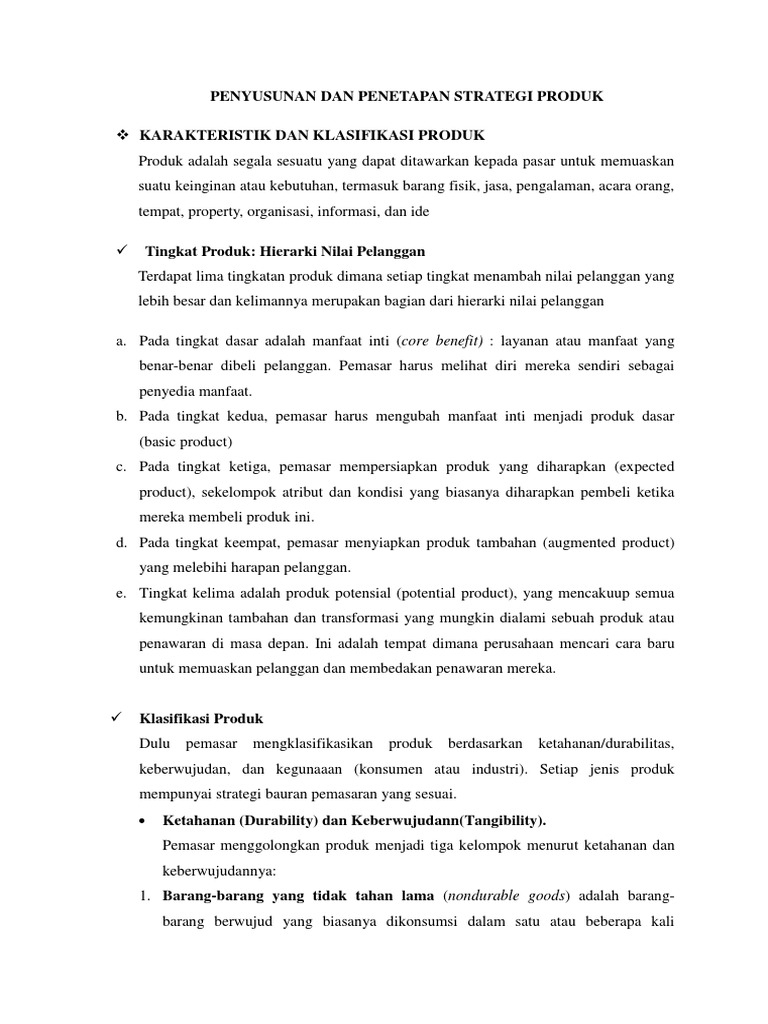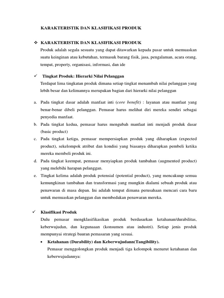 Karakteristik Dan Klasifikasi Produk Penyusunan Dan Penetapan Strategi Produk Karakteristik Dan Klasifikasi Produk Produk Adalah Segala Sesuatu Yang Course Hero